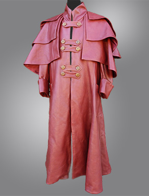 Our premium coachman's cape, the Garrick is made of wool melton and has a standing collar, 3 partially-lined capes, a fully-lined body with a tapered waist and long flared skirts. There are 2 patch pockets on the outside and 2 welt breast pockets on the inside. The Garrick closes with 5 tabs across the front. |